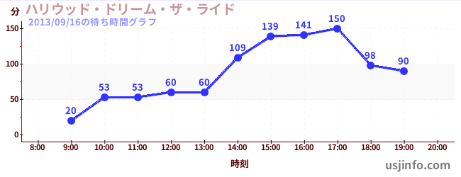• ハリウッド・ドリーム・ザ・ライド$B$N(B2013年09月16日の待ち時間