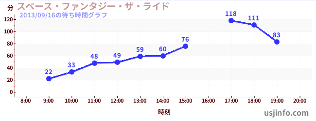 • スペース・ファンタジー・ザ・ライド$B$N(B2013年09月16日の待ち時間