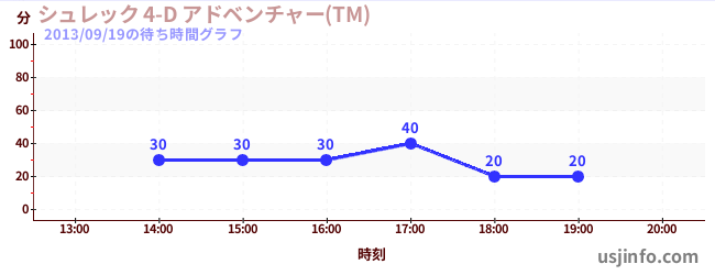 • シュレック 4-D アドベンチャー(TM)$B$N(B2013年09月19日の待ち時間