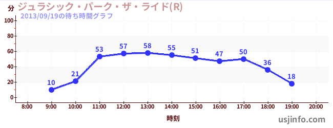 • ジュラシック・パーク・ザ・ライド(R)$B$N(B2013年09月19日の待ち時間