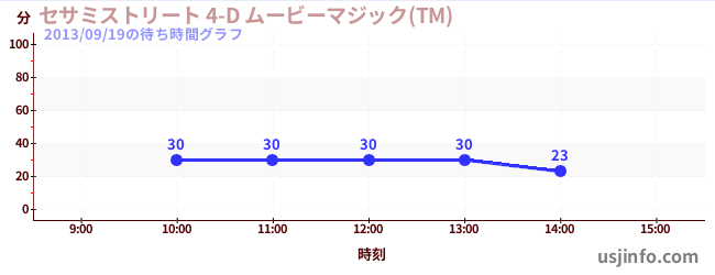 • セサミストリート 4-D ムービーマジック(TM)$B$N(B2013年09月19日の待ち時間