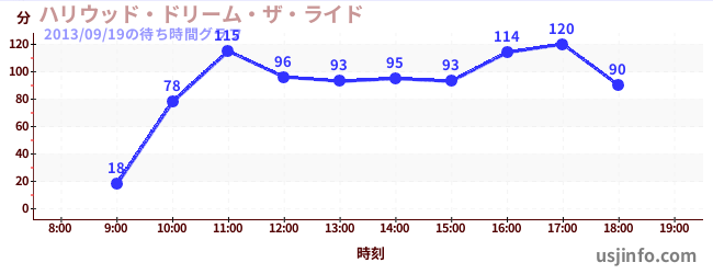 • ハリウッド・ドリーム・ザ・ライド$B$N(B2013年09月19日の待ち時間