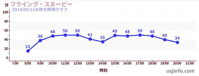 • フライング・スヌーピー$B$N(B2013年09月21日の待ち時間
