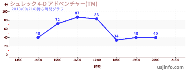 • シュレック 4-D アドベンチャー(TM)$B$N(B2013年09月21日の待ち時間