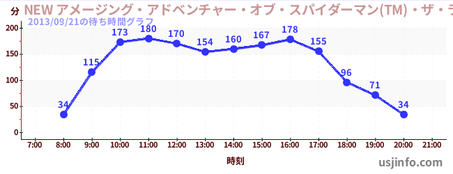 • NEW アメージング・アドベンチャー・オブ・スパイダーマン(TM)・ザ・ライド 4K3D$B$N(B2013年09月21日の待ち時間