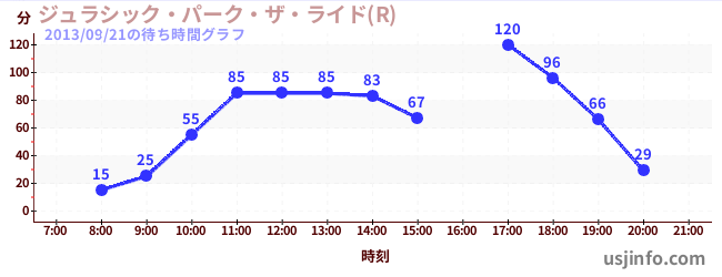 • ジュラシック・パーク・ザ・ライド(R)$B$N(B2013年09月21日の待ち時間