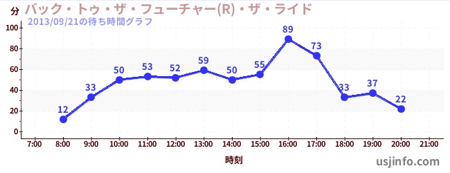 • バック・トゥ・ザ・フューチャー(R)・ザ・ライド$B$N(B2013年09月21日の待ち時間