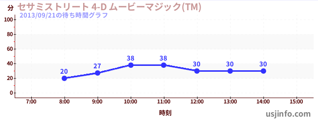 • セサミストリート 4-D ムービーマジック(TM)$B$N(B2013年09月21日の待ち時間