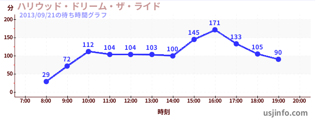 • ハリウッド・ドリーム・ザ・ライド$B$N(B2013年09月21日の待ち時間