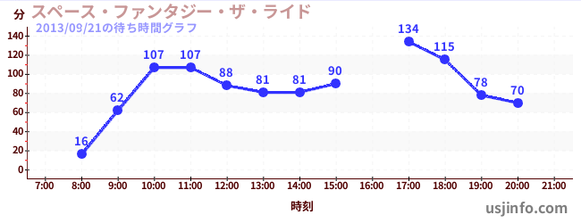 • スペース・ファンタジー・ザ・ライド$B$N(B2013年09月21日の待ち時間