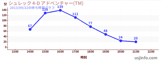 • シュレック 4-D アドベンチャー(TM)$B$N(B2013年09月22日の待ち時間