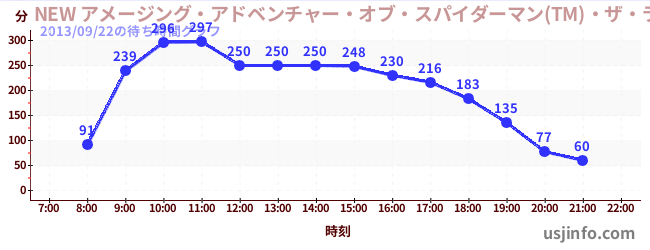 • NEW アメージング・アドベンチャー・オブ・スパイダーマン(TM)・ザ・ライド 4K3D$B$N(B2013年09月22日の待ち時間