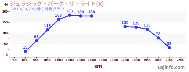 • ジュラシック・パーク・ザ・ライド(R)$B$N(B2013年09月22日の待ち時間
