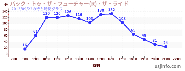 • バック・トゥ・ザ・フューチャー(R)・ザ・ライド$B$N(B2013年09月22日の待ち時間