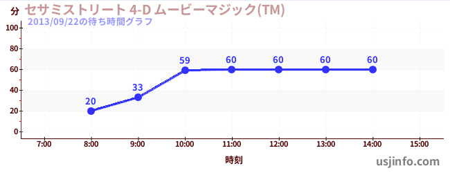 • セサミストリート 4-D ムービーマジック(TM)$B$N(B2013年09月22日の待ち時間