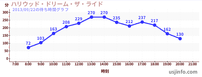 • ハリウッド・ドリーム・ザ・ライド$B$N(B2013年09月22日の待ち時間
