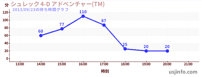 • シュレック 4-D アドベンチャー(TM)$B$N(B2013年09月23日の待ち時間