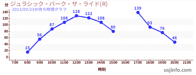 • ジュラシック・パーク・ザ・ライド(R)$B$N(B2013年09月23日の待ち時間
