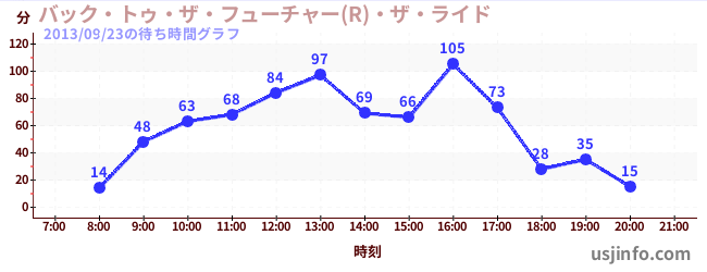 • バック・トゥ・ザ・フューチャー(R)・ザ・ライド$B$N(B2013年09月23日の待ち時間