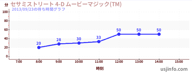 • セサミストリート 4-D ムービーマジック(TM)$B$N(B2013年09月23日の待ち時間