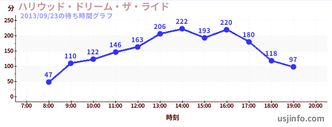 • ハリウッド・ドリーム・ザ・ライド$B$N(B2013年09月23日の待ち時間