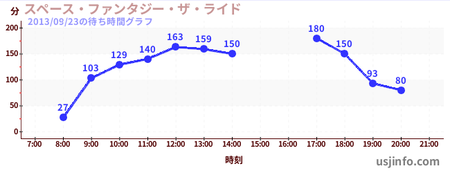 • スペース・ファンタジー・ザ・ライド$B$N(B2013年09月23日の待ち時間