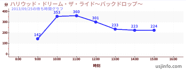 • ハリウッド・ドリーム・ザ・ライド〜バックドロップ〜$B$N(B2013年09月25日の待ち時間