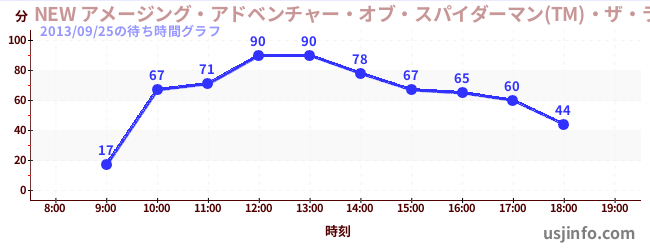 • NEW アメージング・アドベンチャー・オブ・スパイダーマン(TM)・ザ・ライド 4K3D$B$N(B2013年09月25日の待ち時間