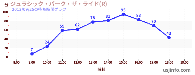 • ジュラシック・パーク・ザ・ライド(R)$B$N(B2013年09月25日の待ち時間