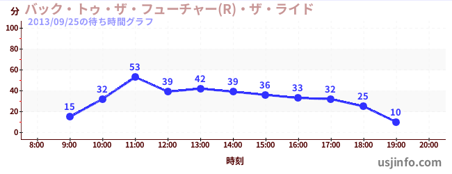 • バック・トゥ・ザ・フューチャー(R)・ザ・ライド$B$N(B2013年09月25日の待ち時間