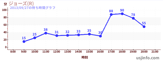 • ジョーズ(R)$B$N(B2013年09月27日の待ち時間