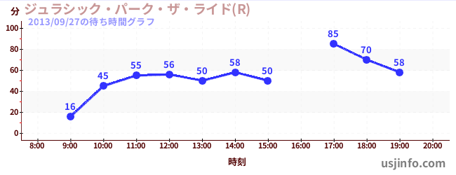 • ジュラシック・パーク・ザ・ライド(R)$B$N(B2013年09月27日の待ち時間