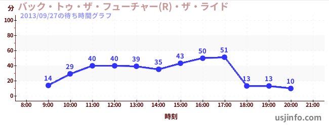 • バック・トゥ・ザ・フューチャー(R)・ザ・ライド$B$N(B2013年09月27日の待ち時間