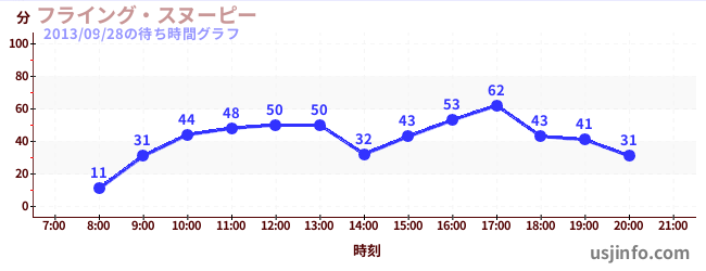 • フライング・スヌーピー$B$N(B2013年09月28日の待ち時間