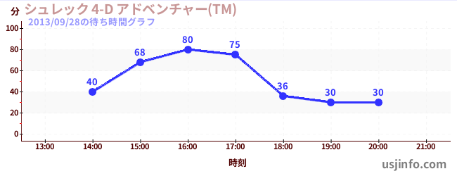 • シュレック 4-D アドベンチャー(TM)$B$N(B2013年09月28日の待ち時間