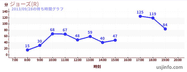 • ジョーズ(R)$B$N(B2013年09月28日の待ち時間