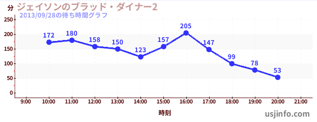 • ジェイソンのブラッド・ダイナー2$B$N(B2013年09月28日の待ち時間
