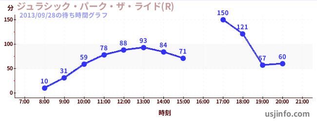 • ジュラシック・パーク・ザ・ライド(R)$B$N(B2013年09月28日の待ち時間