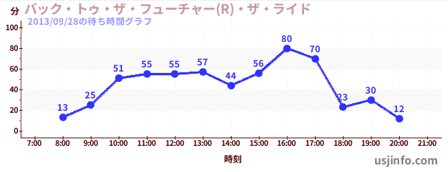 • バック・トゥ・ザ・フューチャー(R)・ザ・ライド$B$N(B2013年09月28日の待ち時間
