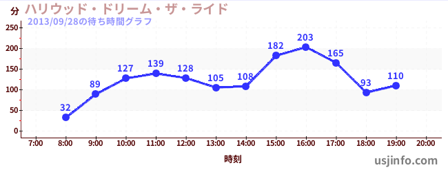 • ハリウッド・ドリーム・ザ・ライド$B$N(B2013年09月28日の待ち時間