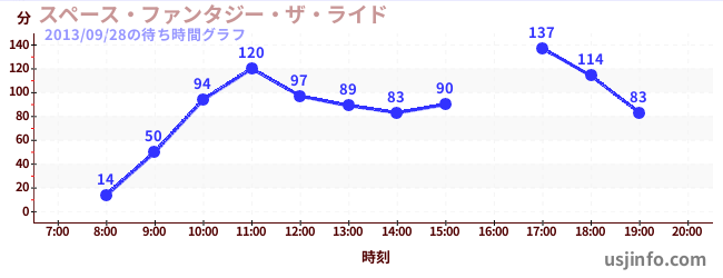 • スペース・ファンタジー・ザ・ライド$B$N(B2013年09月28日の待ち時間