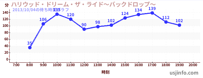 • ハリウッド・ドリーム・ザ・ライド〜バックドロップ〜$B$N(B2013年10月04日の待ち時間
