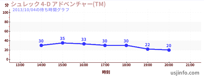 • シュレック 4-D アドベンチャー(TM)$B$N(B2013年10月04日の待ち時間