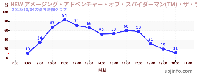 • NEW アメージング・アドベンチャー・オブ・スパイダーマン(TM)・ザ・ライド 4K3D$B$N(B2013年10月04日の待ち時間