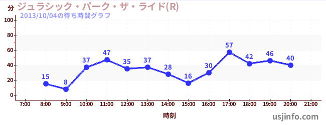 • ジュラシック・パーク・ザ・ライド(R)$B$N(B2013年10月04日の待ち時間