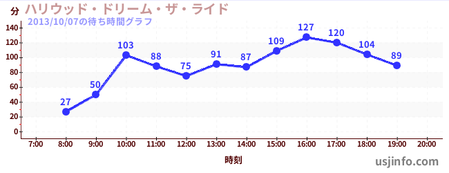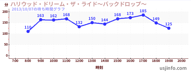 • ハリウッド・ドリーム・ザ・ライド〜バックドロップ〜$B$N(B2013年10月07日の待ち時間