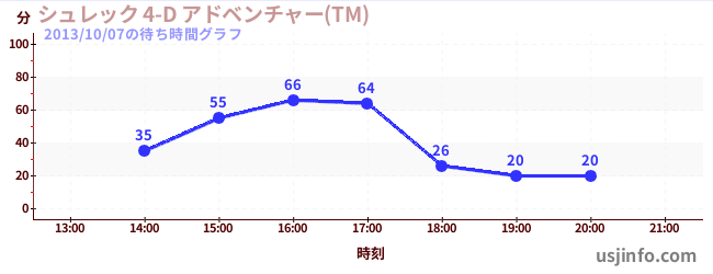 • シュレック 4-D アドベンチャー(TM)$B$N(B2013年10月07日の待ち時間