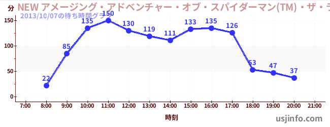 • NEW アメージング・アドベンチャー・オブ・スパイダーマン(TM)・ザ・ライド 4K3D$B$N(B2013年10月07日の待ち時間