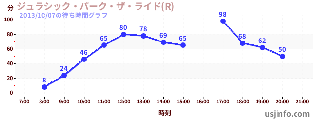 • ジュラシック・パーク・ザ・ライド(R)$B$N(B2013年10月07日の待ち時間