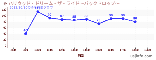 • ハリウッド・ドリーム・ザ・ライド〜バックドロップ〜$B$N(B2013年10月10日の待ち時間